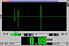 利用单个底面回波,测量金属的实际厚度和涂层厚度(使用D7906-SM、D7906-RM和D7908探头)