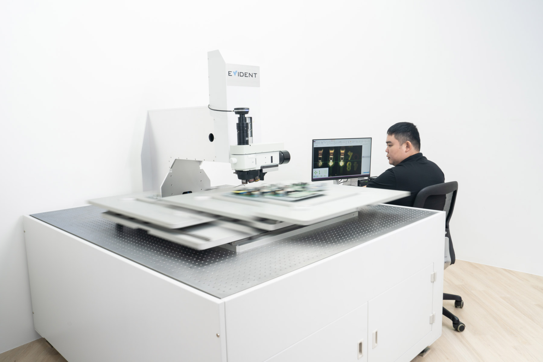 ![]() | Adjustable Large Stage MicroscopeTo streamline the inspection of large samples, our customizable microscope system with adjustable stages can be tailored to accommodate specific sample sizes and inspection workflows. Our solution meets the increasing demand to inspect a variety of samples quickly with consistent and reproducible results. See More |