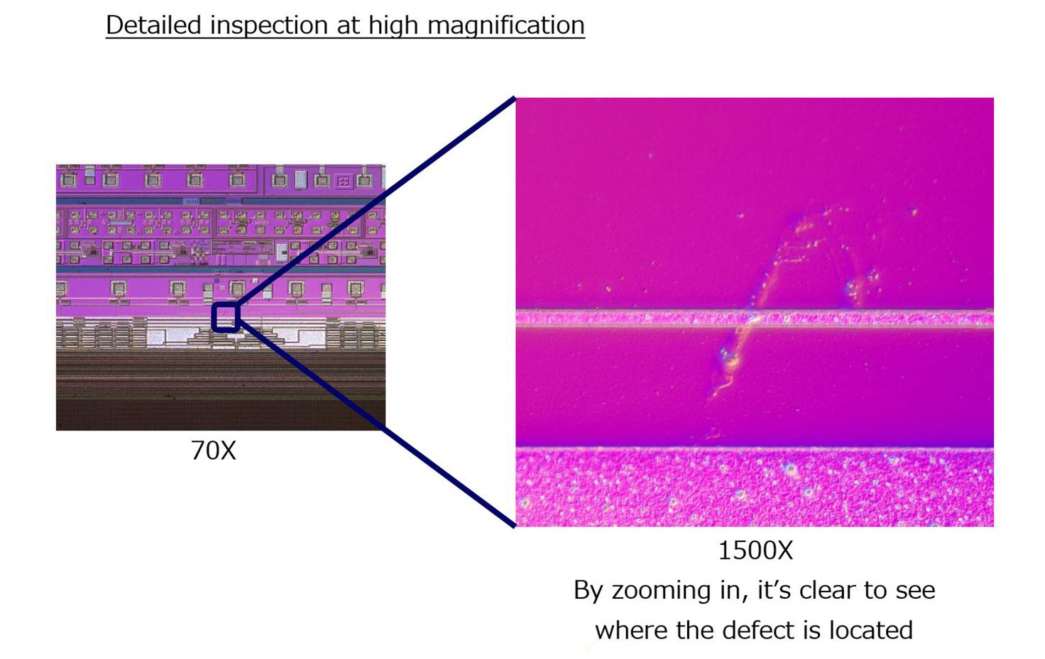 微分干涉观察:低放大倍率(70X)缺陷检测 |