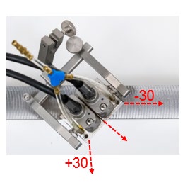 生成偏离探头轴向的S扫描的主要目的是探测和定量奥氏体管材焊缝中的轴向和横向IGSCC(晶间应力腐蚀开裂)。声束偏离探头轴向的角度范围取决于探头次轴上的晶片数量,以及晶片的大小和频率。尽管A17探头在使用平面楔块时可以生成至少45度的斜射声束,但是在使用AOD楔块时,或者在管材的轴向外径降低时,对角度的限度则会降低。
