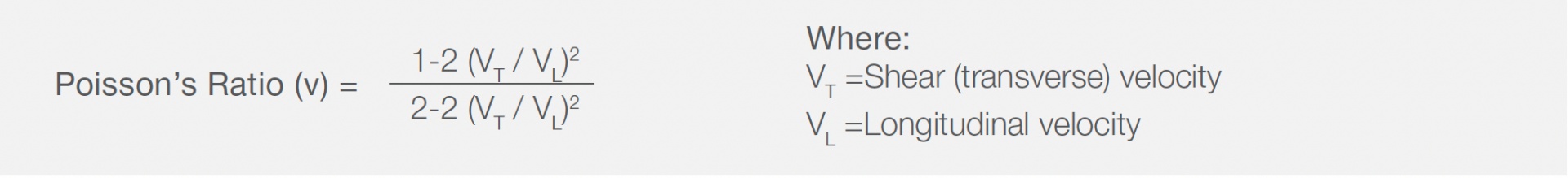 这些基本材料特性可根据测量到的声速和材料密度通过计算确定,且在许多制造和研究应用中都有使用。使用超声脉冲回波技术和适当的设备,可以轻松测量材料的声速。 以下概括说明的一般程序适用于任何质地均匀、各向同性、非分散的材料(声速不会随着频率而更改)。这些材料包含大多数常见金属、工业陶瓷和玻璃,只要它们的横截面尺寸不接近检测频率波长即可。也可以测量聚苯乙烯和丙烯酸等硬质塑料的声速,虽然这类材料的声衰减性较高,测量起来比较困难。 橡胶材料由于具有较高的分散性和非线性弹性特征,因此无法通过超声方式表征。软性塑料在剪切模式中同样会表现出很高的衰减性,因此通常无法进行检测。对于各向异性材料,弹性特性会随方向而变化,纵波和/或剪切波声速也是如此。要为各向异性材料样件生成一个完整的弹性模量矩阵,一般需要6组不同的超声测量值。材料的孔隙率或粗粒度会影响超声弹性模量测量的准确性,因为晶粒的大小与方向,或孔隙的大小与分布这些情况会引起声速的变化,而与材料的弹性无关。 模量计算所需的检测设备测量用于模量计算的材料声速,通常使用精确测厚仪,例如:39DL PLUS仪器或装配有单晶软件的45MG仪器,也可以使用具有声速测量功能的探伤仪,如:EPOCH 650或EPOCH 6LT仪器。72DL PLUS测厚仪提供分辨率更高的飞行时间(TOF)测量,从而可实现更精确的声速测量。 这种检测还需要两个适用于被测材料的探头,在纵波和横波模式下进行脉冲回波声速测量。常用的探头包括M112或V112宽带纵波探头(10 MHz)和V156垂直入射横波探头(5 MHz)。在检测多种常用金属和烧制陶瓷样件时,这些探头的检测效果非常好。在检测很厚、很薄或衰减性很强的样件时,需要使用不同的探头。某些应用还可能需要使用穿透技术,这种技术要求将成对的探头放置在被测工件相对的两侧进行检测。如要获得有关具体探头的建议和仪器设置方面的帮助,请联系我们。 被测样件可以具有任何几何形状,可以对穿过其某一部位(厚度)的声束的传播时间进行准确的脉冲回波测量。理想情况下,样件的厚度至少要有12.5毫米,其相对的表面要光滑、平行,其宽度或直径要大于所用探头的直径。在检测较窄样件时一定要格外注意,因为潜在的边缘效应可能会影响所测量的脉冲传播时间。在测量很薄的样件时,由于脉冲传播时间在短声程中的微小变化,分辨率会受到限制。因此,我们建议样件至少应有5毫米厚,最好更厚些。在任何情况下,都必须了解被测样件的准确厚度。 采用厚度测量和缺陷检测解决方案计算模量的程序使用适当的探头和仪器设置,测量被测样件的纵波和横波声速。横波(剪切波)声速的测量需要使用专门的高粘度耦合剂,如我们的SWC-2。39DL PLUS测厚仪或装配有单晶软件的45MG测厚仪可以根据输入的样件厚度,直接读出材料的声速。EPOCH系列探伤仪可以通过声速校准程序测量声速。无论哪种方法,都要按照仪器操作手册中推荐的程序进行声速测量。只需记录下纵波和横波探头发出的声波通过一个已知厚度区域所用的往返传播时间,并进行计算: 如需高精度声速测量,建议使用72DL PLUS超声测厚仪(+或–10皮秒)。根据需要转换单位,以获得以英寸/秒或厘米/秒表示的声速(时间通常以微秒为单位,因此将英寸/微秒或厘米/微秒乘以106,可以获得英寸/秒或厘米/秒为单位的声速)。可以将获得的声速输入到以下公式: 关于单位的说明:如果声速以厘米/秒为单位表示,且密度以克/厘米3为单位表示,则杨氏模量会以达因/厘米2为单位表示。如果使用英制单位:英寸/秒和磅/英寸3,计算以磅/平方英寸(PSI)为单位的模量,则需清楚作为力的单位的“磅”和作为质量单位的“磅”之间的区别。由于模量表示为每个单位面积的力,因此当使用英制单位进行计算时,必须要将以上公式的结果乘以一个质量/力的转换常量(1/重力加速),以获得以PSI为单位的模量。在另一种情况下,如果最初的计算使用了公制单位,则要使用以下转换因数:1 PSI = 6.89 × 104 dynes/cm 2(dyne为达因)。还有一种情况是输入以英寸/秒为单位的声速,以克/厘米 3为单位的密度,然后除以转换常量:1.07 × 104,以获得单位为PSI的模量。 要获得剪切模量,只需将横波声速的平方乘以密度即可。再一次使用厘米/秒和克/厘米3单位,获得以达因/厘米2为单位的模量,或以英寸/秒和磅/英寸3英制单位表达的模量,然后再将结果乘以质量/力的转换常量。 参考文献要了解更多有关弹性模量的超声测量方面的信息,请参阅以下书目: