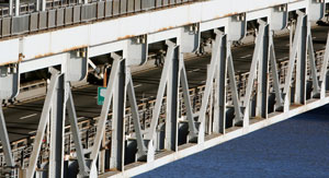 During the manufacture of bridge structures, a lot of automated welding is used to rapidly and efficiently build multiple parts. One of these welding processes is a system that uses opposing arcs to weld stiffeners to webs on the bridge parts. This welding process produces horizontal fillet welds simultaneously on both sides of a tee-joint.