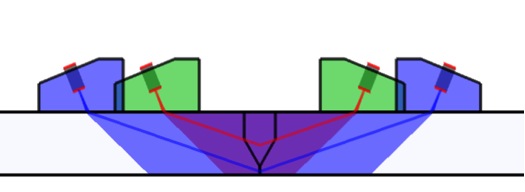 TOFD通常使用纵波进行检测,这是衍射时差技术的主要检测方式。超声传感器被放置在焊缝的两侧。一个传感器向材料内部发射超声波,另一个传感器接收来自异常反射体和几何形状反射体的反射超声波或衍射超声波。利用超声束的扩散理论,TOFD可以使一条单个声束覆盖楔块和被测材料内部的大面积区域。当声束接触到缺陷或裂纹的端部时,衍射能量会在各个方向上投射。测量衍射声束的渡越时间,可以进行精确可靠的缺陷探测和缺陷定量,即使裂纹偏离了初始声束的方向。在典型的TOFD检测中,A扫描被收集起来,并被用于创建焊缝的B扫描图像(侧视图)。 可以在采集仪器中进行分析,也可以在离线分析软件中进行分析,方法是将光标定位在适当的位置,以测量缺陷的长度和垂直高度。