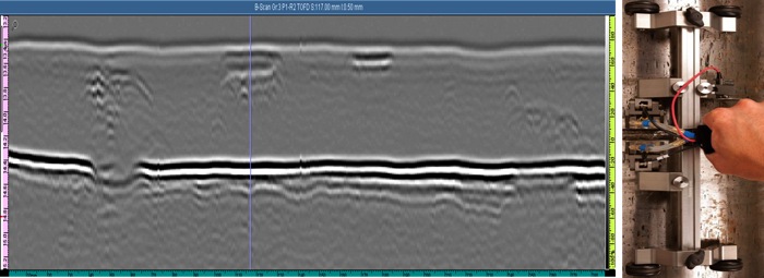 - 与相控阵技术相比,要求使用的设备更能节省成本,因为其常规超声的特性(单个脉冲发生器和接收器)以及对常规探头的使用。