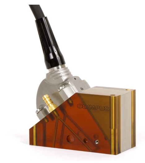 | 安装在ULTEM楔块上的奥林巴斯探头 |