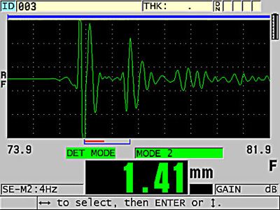 图4:用72DL PLUS测厚仪执行的 薄钢薄厚度测量(0.0032 in.)
