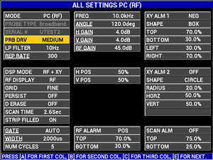 BondMaster 600仪器提供一套完备的快捷访问键,可使用户对常用的参数进行即时调整,如:增益、全屏模式、显示模式(RUN)等等。可使用8种鲜亮清晰的彩色荧屏设置显示信号,在室内和室外光线条件下加强了屏幕的可视性,从而有助于降低操作人员的眼部疲劳。