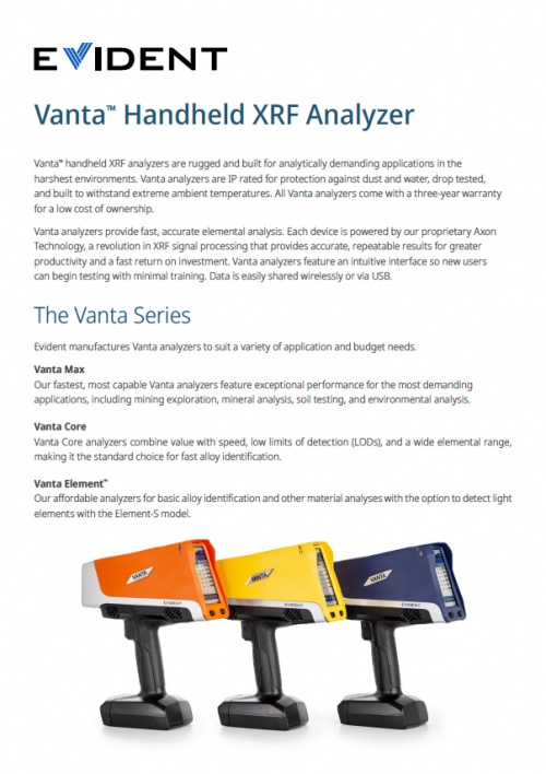 Vanta™ Handheld XRF Analyzer Specifications