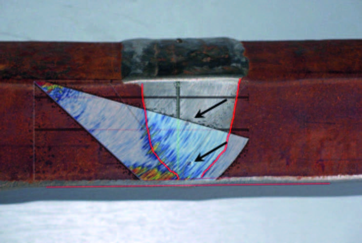 When a UT beam travels through a component containing a weld, both the metal-metal interface and the coarse-grained structure of the weld can cause reflection (backscatter) and refraction of the UT waves. This, in turn, will lead to skewing and attenuation of the beam (figure 2).