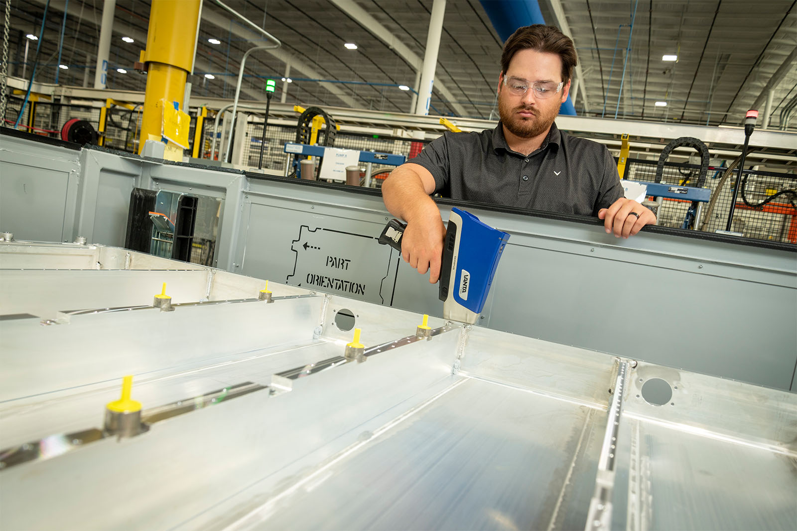 技术人员正在使用手持式XRF分析仪进行涂层分析。