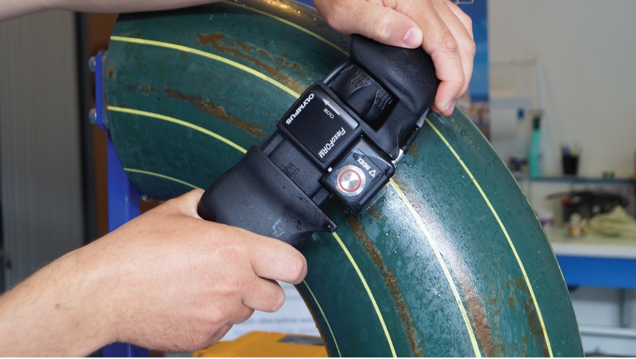 “我们也会使用FlexoFORM检测弯头部位。这款扫查器为我们提供了之前没有的解决方案。我们以前使用非常小的传统探头进行点厚度测量。这种网格采样不能使我们进行100%的验证。此外,我们没有图像可以呈现。有了FlexoFORM扫查器,我们就可以检测整个表面并生成图像了。”