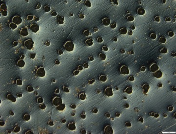 | 由反射光显微镜截取的图像。截取第一张图时没有使用科勒照明;截取第二张图时使用了科勒照明。 |