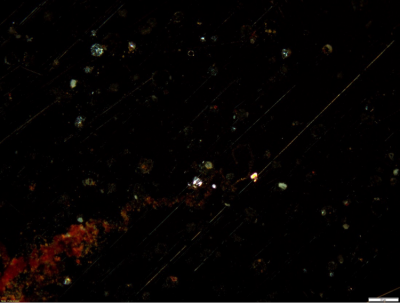 暗场显微镜:暗场显微镜非常适用于标本所散射的光会引起相差的应用。未被标本散射的光不会由物镜收集,也不会进入到图像中。因为标本的这部分区域显得很暗。暗场显微镜的主要局限性是最终图像中可见光的成像较弱。这就是科勒照明技术发挥作用的方式:使用强光照亮标本。突出的部位因为太光滑而不会在明场图像中投射阴影,但是从这些部位周边反射的光将会出现在暗场图像中。