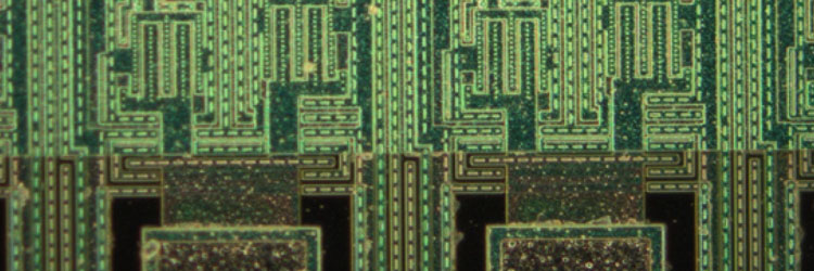 | 明场显微镜观察到的抛光金属横截面的图像,上图为未使用微分干涉对比技术的图像,下图为使用了微分干涉对比技术的图像。 |