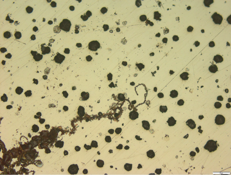 | 由反射光显微镜截取的图像。截取第一张图时没有使用科勒照明;截取第二张图时使用了科勒照明。 |