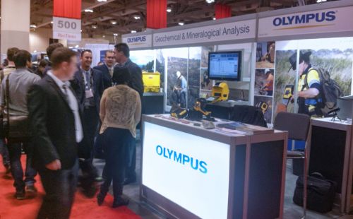 | 在PDAC(加拿大勘探者与开发者协会)举办的展会上展出的奥林巴斯XRF分析仪 |