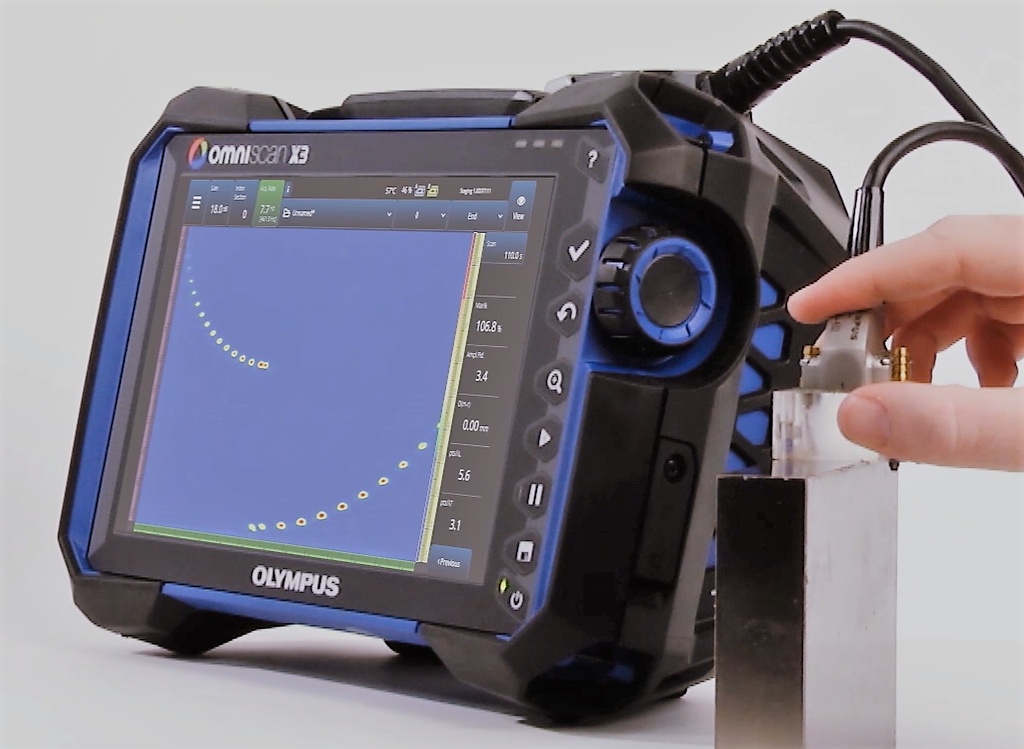 OmniScan X3探伤仪的机载声学影响图(AIM)建模工具有助于预测即将生成的TFM信号的质量。声学影响图显示某种特定的探头和楔块组合在使用某个选定的声波组对某个反射体进行检测时会产生的预期超声响应。借助这种方式,您可以做出正确的选择,包括为您的设置选择合适的探头和楔块。