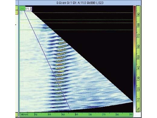 これまで画像化が難しかった縦方向に伸展する割れなど設備に疲労欠陥をプローブを当てるだけで忠実に画像化可能。検査の品質・判断の精度向上と導入後の短期間での習得に貢献します