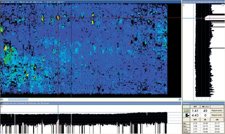| 带状图● 经验丰富的分析人员将会欣然接受这种新推出的实际纸张格式的带状图。此外,带状图模式还可被切换到以前的格式。 | 分析报告 这个功能可以在数据库中记录所有分析结果(缺陷)。 新近改进的性能还包括准确记录缺陷指示的距离,以及在报告窗口中直接调用缺陷指示。 所有被支持的技术都具有同样的报告性能。 | ||
