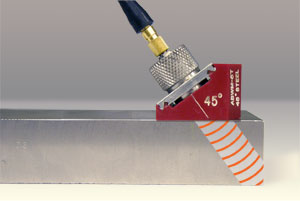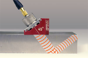 首先需要注意的是:声束入射点(声束中心离开楔块的点)对于常规楔块来说是一个固定的点,而对于相控阵楔块来说,是一个移动的点。在线性扫查过程中,声束入射点会随着扫查的进行,沿探头长边循序移动。在扇形扫查的过程中,以不同角度发射的声束在楔块上不同的点处穿出楔块。