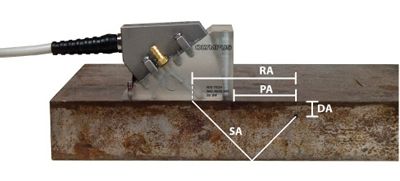 由于相控阵探头的声束入射点会发生变化,因此常用的做法是基于楔块前沿的位置而不是声束入射点(BIP)计算缺陷的位置。可以根据声束信息计算下面的几个维度距离:
