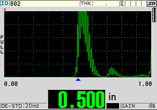模式3通常可提供很高的测量精度和上佳的最小厚度分辨率,尽管其最大可测厚度会受到限制。 这种模式需要两个或更多的清晰多重底面回波,因此通常只能对衰减性相对较低且声阻抗较高的材料进行测量,如细粒金属、陶瓷和玻璃。可以使用适当的高温延迟块探头在高温下进行测量。模式3还具有从带涂层金属的厚度测量值中去除薄的非金属涂层(如油漆)的优势。