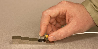 推荐使用的声速和零位校准程序是“两点校准”,这种校准需要两个具有不同厚度、与被测样件材料相同的校准试块,试块的厚度需处于待测厚度范围内,且要精确已知。不一定要用商业试块,只要试块的厚度已知即可。更重要的是,用于校准的材料要与被测材料完全相同,表面处理情况最好也相同。两个试块的厚度比应为2:1或更大,最好是5:1或更大。
