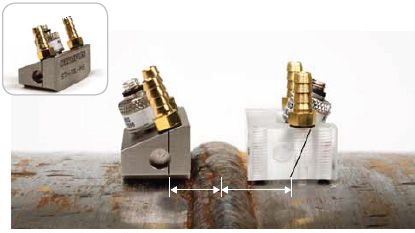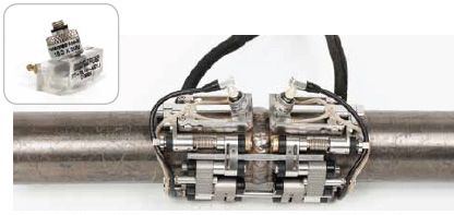 为了与开发成熟的COBRA扫查器配套使用而专门设计的另一类TOFD系列楔块可用于在窄小的空间进行检测。这些楔块可与晶片直径为3毫米的ST1探头配套使用,对直径为1英寸到4.5英寸的管道进行检测。这些楔块有多种不同的纵波折射角度,用户可以订购用于检测特定直径管道的楔块,也可以订购包含用于检测各种直径管道的楔块套装。 | ![]() COBRA小直径管道扫查器可以使用适当的楔块、线缆和探头进行TOFD检测。 |