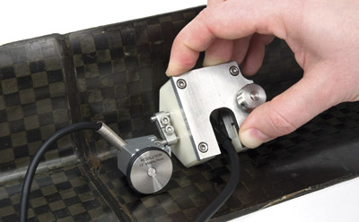 为了确保叶片具有长期可靠的操作性能,对其抗剪腹板粘接情况的检测非常关键。这种相控阵探头解决方案可以使探头在叶片的长度或宽度两个方向上完成扫查:使用Mini-Wheel(袖珍轮)编码器,可以进行手动单行编码扫查;使用GLIDER(滑动式)扫查器,可以进行双轴半自动编码扫查。