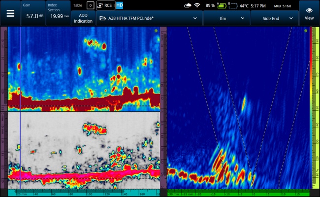 Live TFM Envelope ProcessingFacilitate Flaw Characterization and SizingThe instrument’s unique envelope processing provides high-resolution TFM images. Indications look clean and sharp and stand out more clearly against background noise. Up to four TFM modes facilitate interpretation and sizing. ![]() |