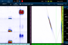 使用真实深度或声程中的闸门,或更改放大调色板,可以更迅速地定位信号指示。 |