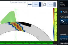 声学影响图(AIM)工具可以基于您的TFM(全聚焦方式)模式、探头、设置和模拟反射体,即时提供灵敏度的可视化模型。 声学影响图(AIM)工具消除了扫查计划创建过程中的猜测因素,因为屏幕上会显示某个声波组(TFM模式)的效果图,使您看到灵敏度消失的位置,并对扫查计划进行相应的调整。 |  |