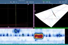 仪器独特的包络处理功能可以生成高分辨率的TFM(全聚焦方式)图像。图中的信号指示干净、清晰,在背景噪声的衬托下,显得更加鲜明突出。最多可显示4种TFM(全聚焦方式)图像,有助于缺陷的解读和定量。  |