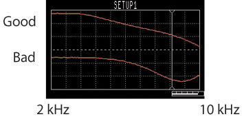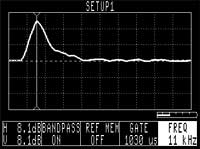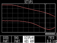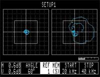 Figure 21. The instrument sweeps through the frequency range of a probe and displays the probe's resonance characteristics. Confirmation of the resonance frequency confirms the correct operation of the probe.