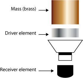 The mechanical impedance analysis (MIA) inspection method uses a single-tipped, dual-element probe. A drive element, coupled to the test piece through a plastic cone and wear shoe, generates audible sound waves into the test part. A drawing of an MIA probe inspection method is shown in Figure 14. The probe assembly is shown in Figure 15.