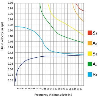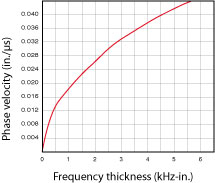 The propagation speed or phase velocity of Lamb waves are a function of the frequency and layer thickness for a particular plate material. These dispersion curves are shown in Figure 11.