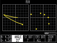 For the pitch-catch RF method, the alarm can be set either for an amplitude-only display or for a phase-and-amplitude display as shown in Figure 3 and Figure 4. In addition, these two displays can be combined on one screen using the RUN2 mode shown in Figure 5.
