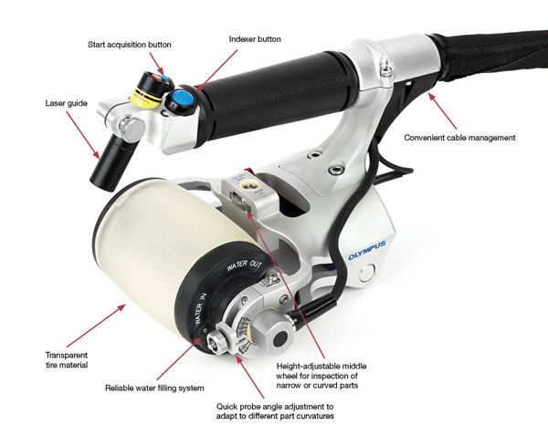RollerFORM扫查器独特的轮胎材料经过专项开发研制,可以确保完成与水浸检测相仿的高质量超声检测。只需略施耦合剂,稍微用点力,RollerFORM扫查器就可提供优质的耦合效果,并获得很强的信号,即使在难以扫查的位置,也能做到这点。