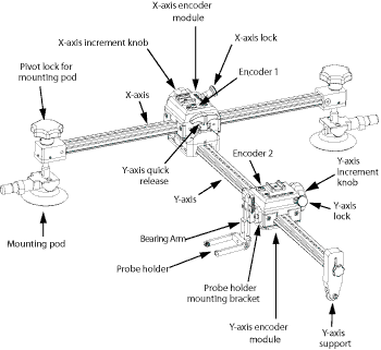 有两个编码器模块(每个轴上有一个),用于测量探头位置。这些模块可使用3.27毫米步距移动,自由运行,或被锁定。