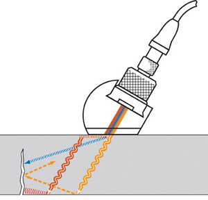 基于这3个声波是否会产生反射信号,可以探测并定量接触到内壁的裂纹。